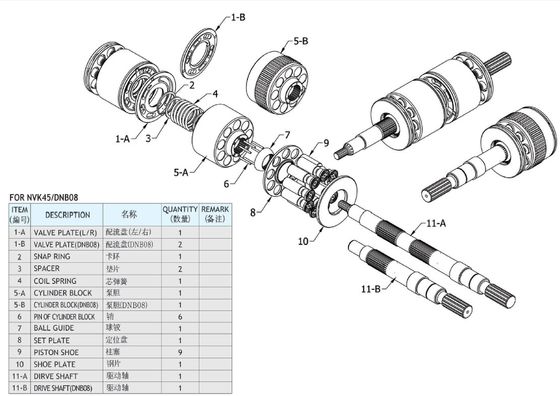 K7VG180 / K7VG265 / K5V80 / K5V180 / K5V160 / K3V163 / K3V200 / K3VG180 / K3VG280 / NV45 / NV64 / NV70 / 111 / NV120 / NV137 / NV172 / NV210 / NV270 / NX15 / এনভি কে 45 / পাম্প